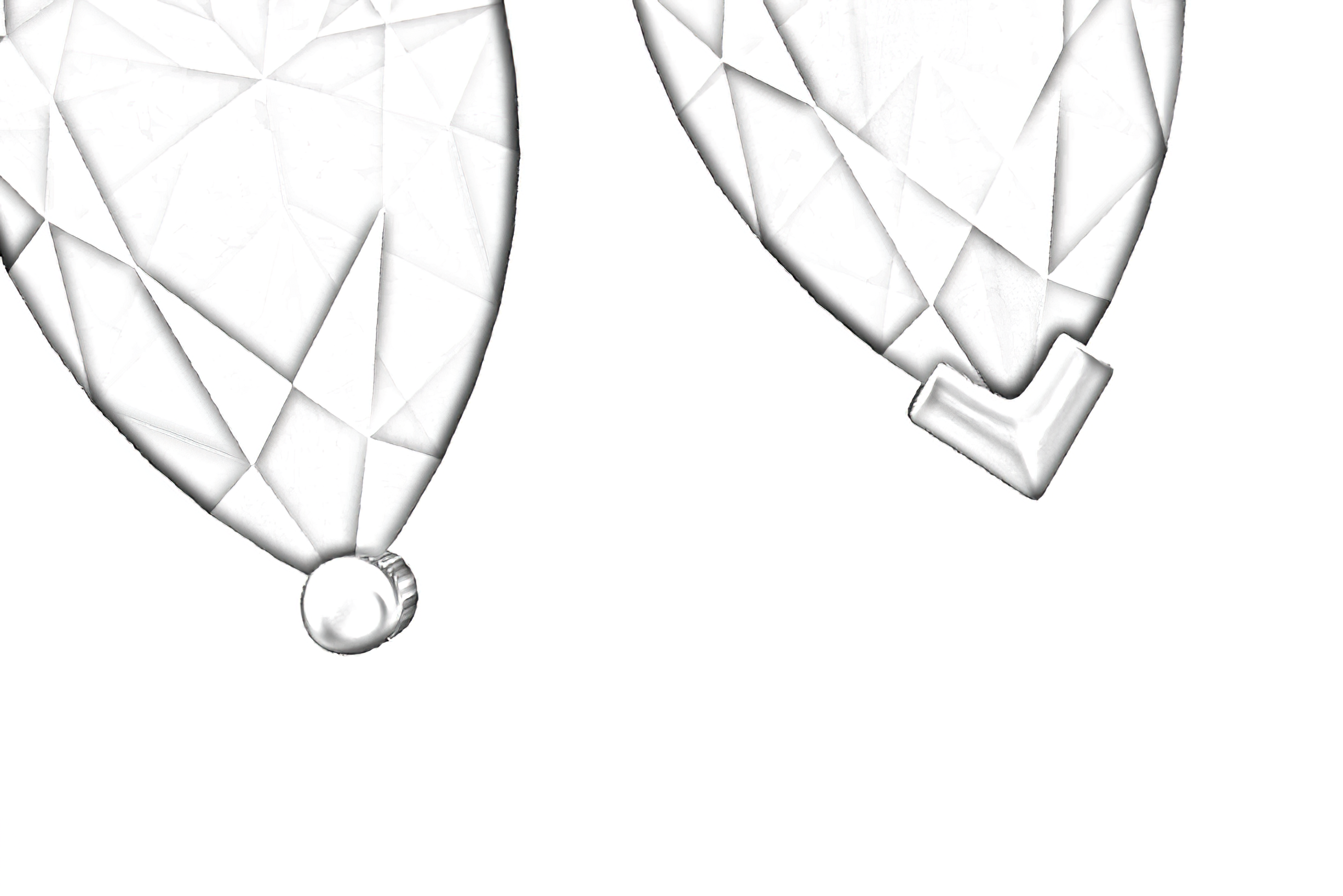 A v-claw offers a pocket for the gem to sit in and then secures it by the two sides of the v shaped claw. This style of setting reduces the strain put on the weakest part of a pear cut gem, the point. Given the customers intended wear we needed to change to a v-claw.
