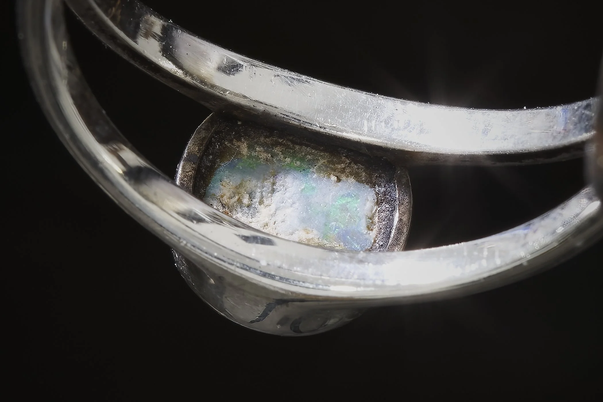 That dark substance between the opal and the metal. What could it be?