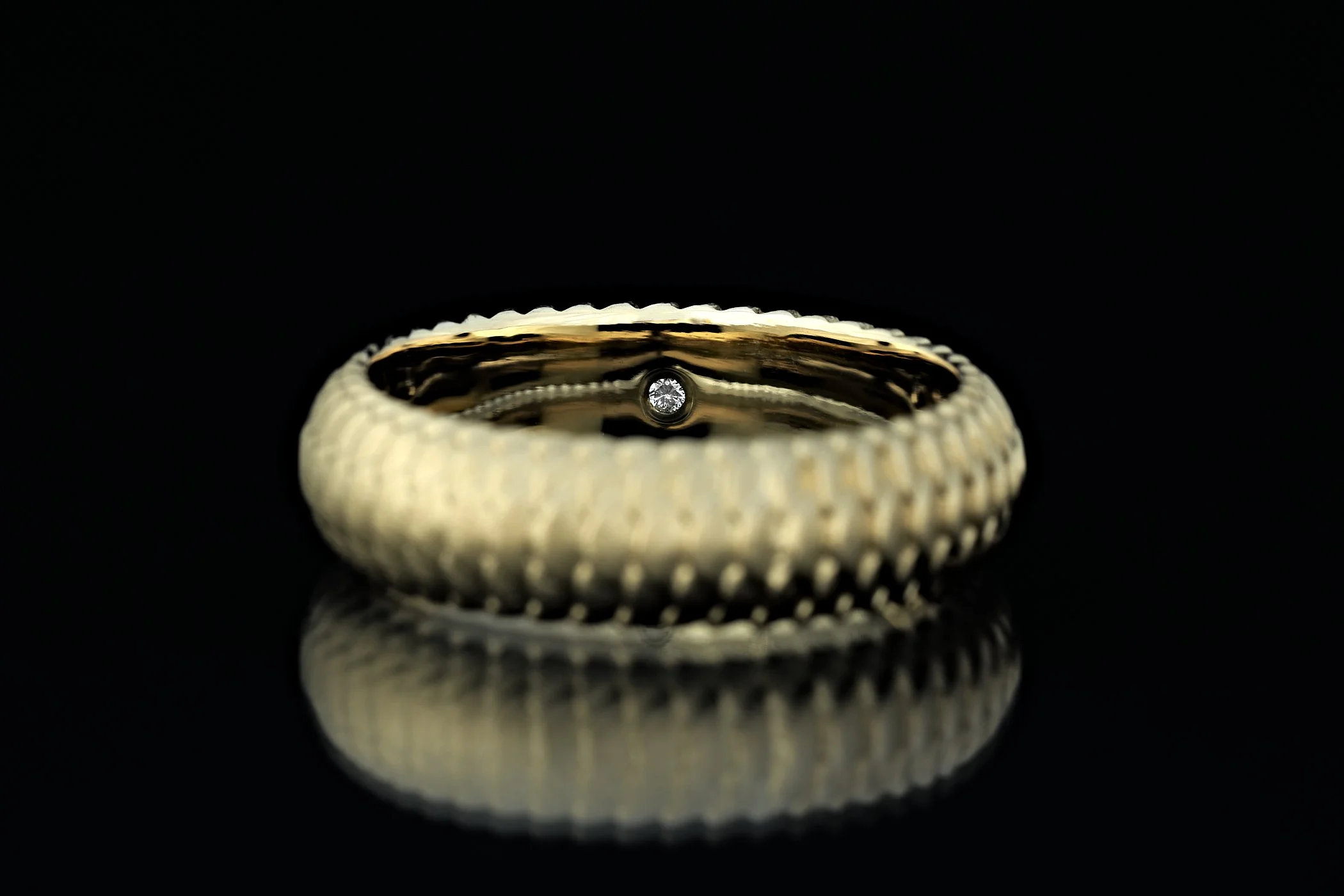 Snakes skin wedding ring in 14ct yellow gold.