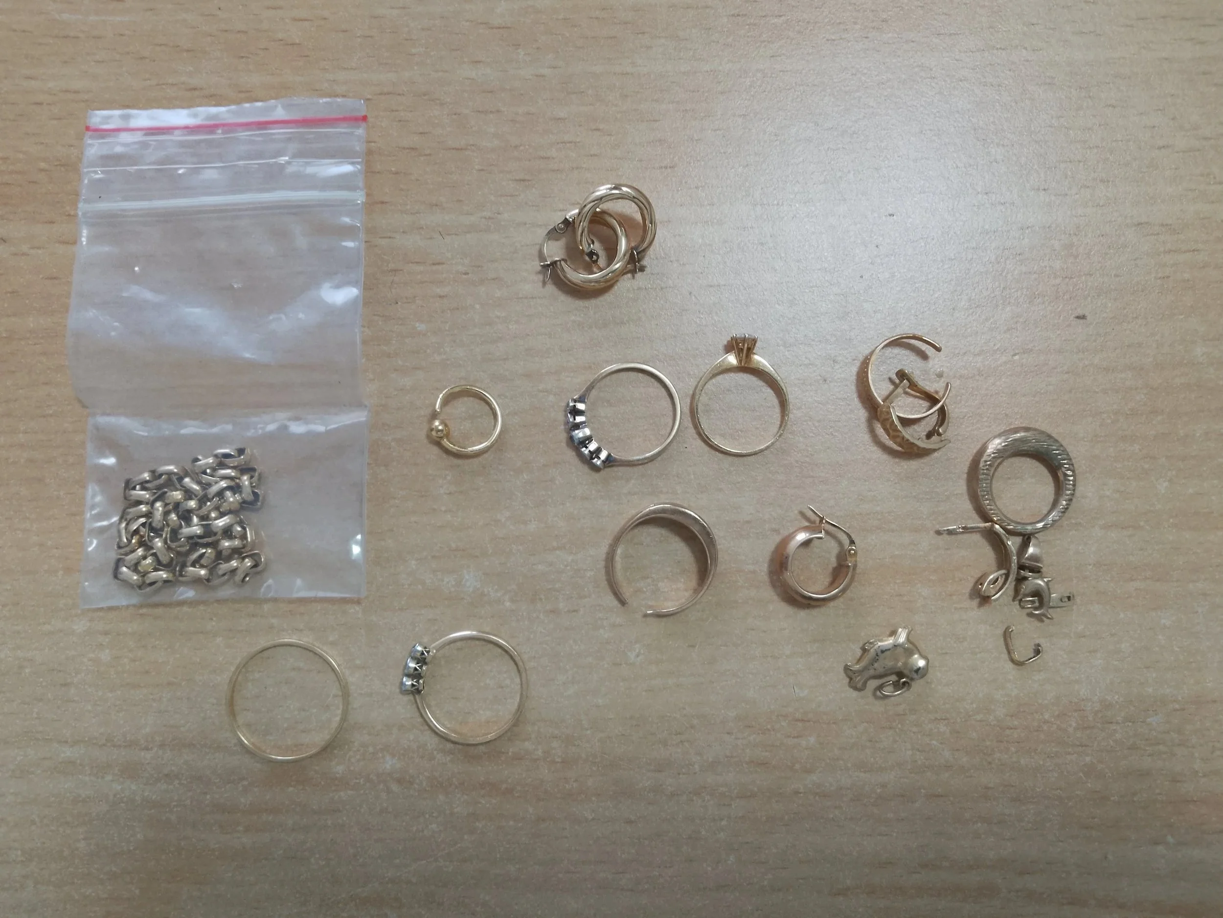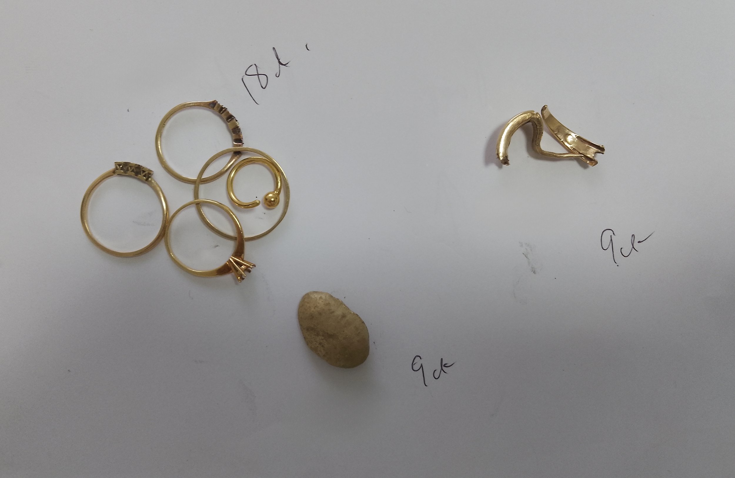 I melted down the hollow 9ct jewellery whilst the customer was there to show her how small a volume it would reduce to. The melted gold is shown bottom centre above.