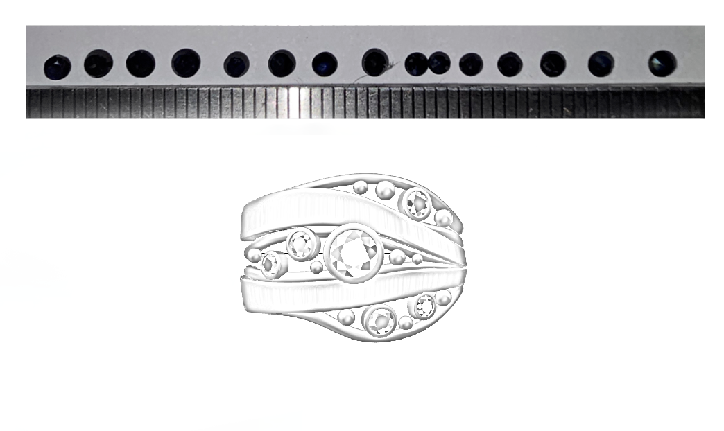 The sapphires she thought were tiny scaled in the image to her ring ….where would they go?