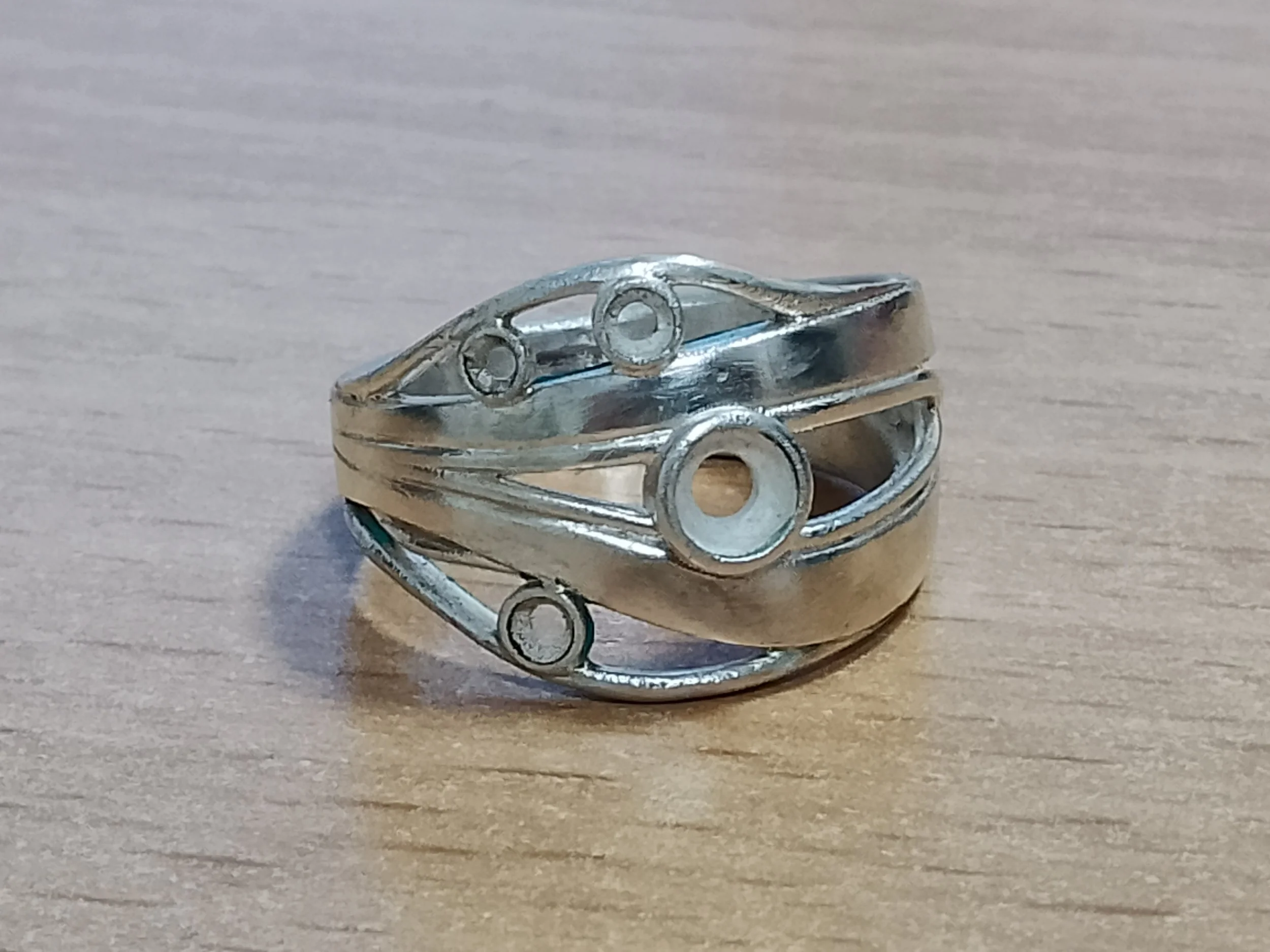 The silver draft used to confirm the finger size and general shape of the ring.
