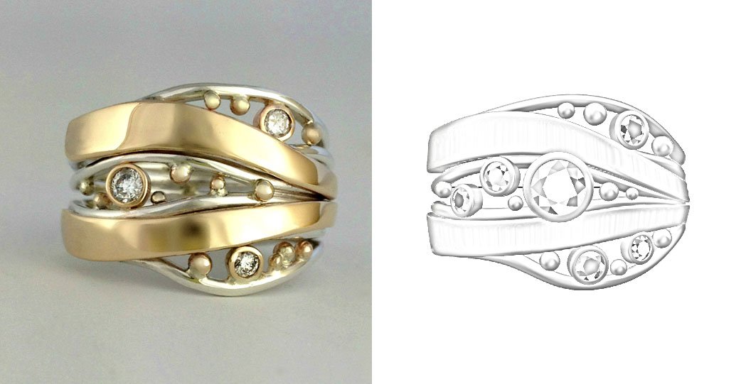 In the case of this ring it was a far from complete draft but it did give the customer a very good idea of how the ring would turn out. We modified that drafts size until it was perfect. We now knew the exact sie the ring needed to be made to.