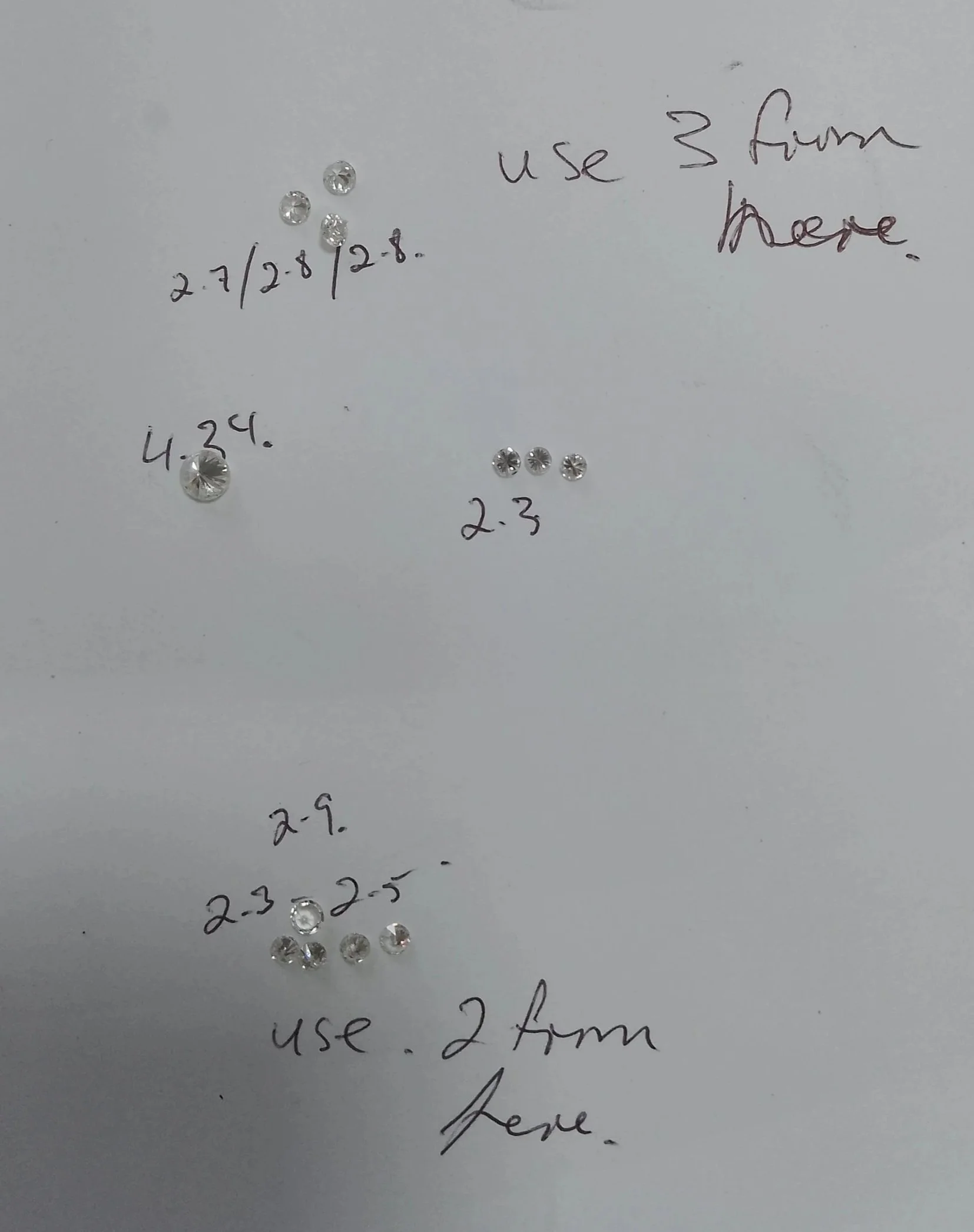 Noting which gems were to be used and measuring them.
