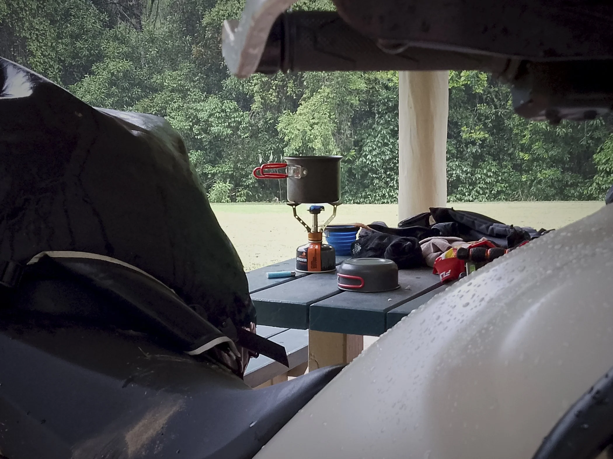 By the time I made it back to Danbulla Road it was bucketing down so I headed to the day picnic area at the Chimneys to take a break and enjoy a Milo before heading home down Gilles Range….in the rain on the black top on offroad tyres. Oh the joy!