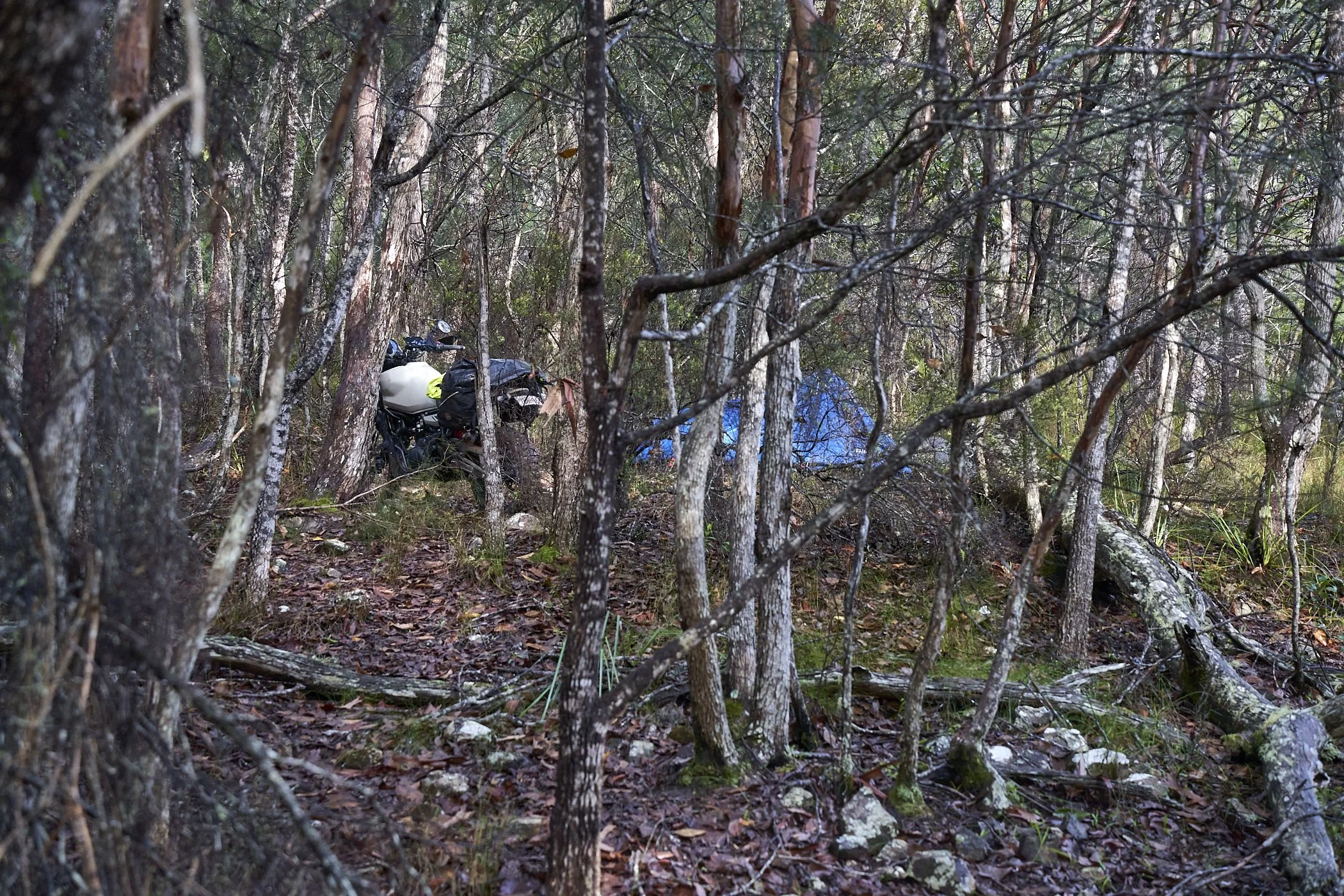 We have had a lot of rain and there is no track into my intended campsite in an old logging area. You need to make your way through dense both fallen and standing trees. In the wet I thought this might be an issue but the real problem was getting to the trees.