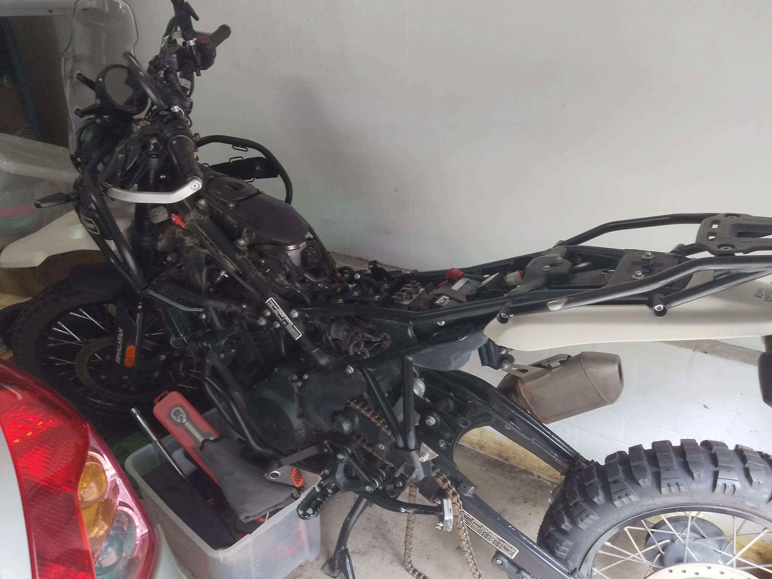 Himi in pieces in the garage for nearly 2 months after the rear shock failed.